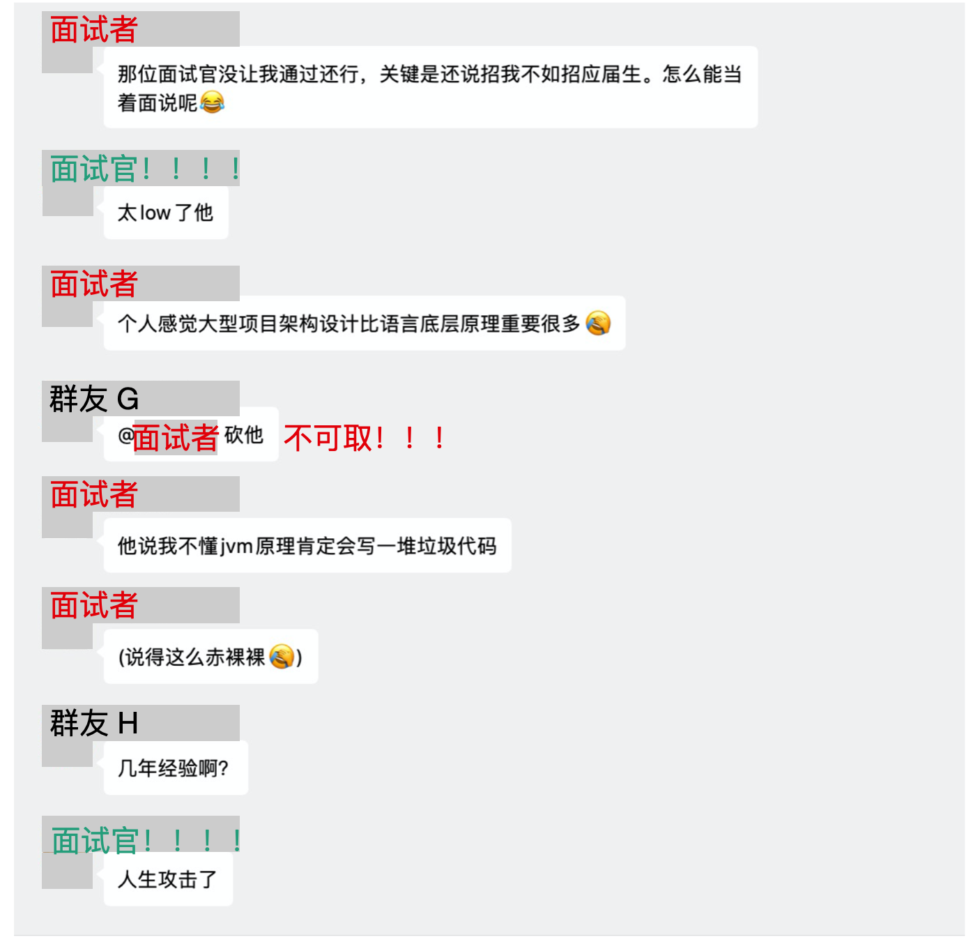 故事继续发展,这位面试者和面试官的对话还在继续,下面好像引起了面试者的不爽