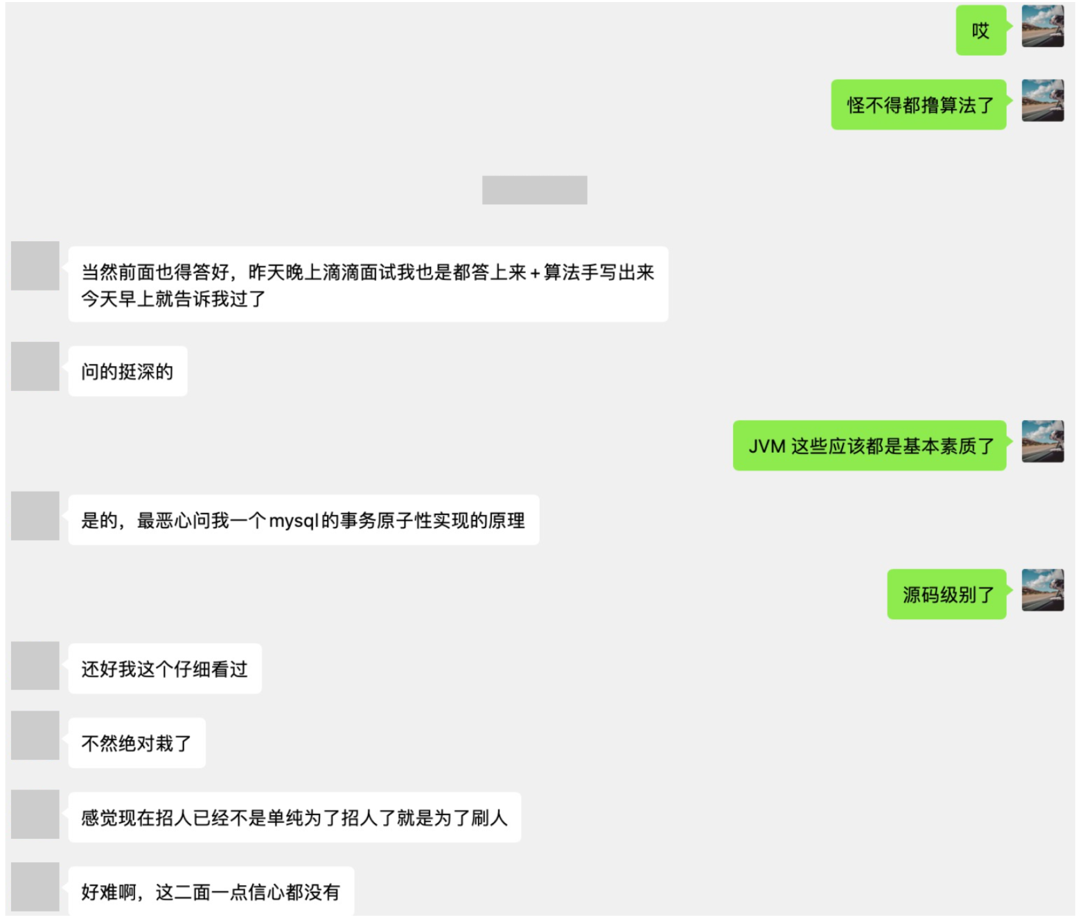 最近是面试季,又快到了秋招的时期,很多人都在找工作,之前我的读者有一位毕业后就在一家公司工作 4 年的程序员,面试高级开发,和我吐槽面试太难了,这位老哥经常在我 每日一题 群里回答的非常有条理性,可以看看他的回复
