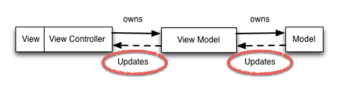 - ViewModel 是拥有 Model 的,那么当 Model 变化的时候,ViewModel 也会随之改变;而一旦 ViewModel 改变,View 也同样需要更新(值得注意的是,这是单向绑定,唐巧在他的被误解的 MVC 和被神化的 MVVM说这是双向绑定是有问题的)。